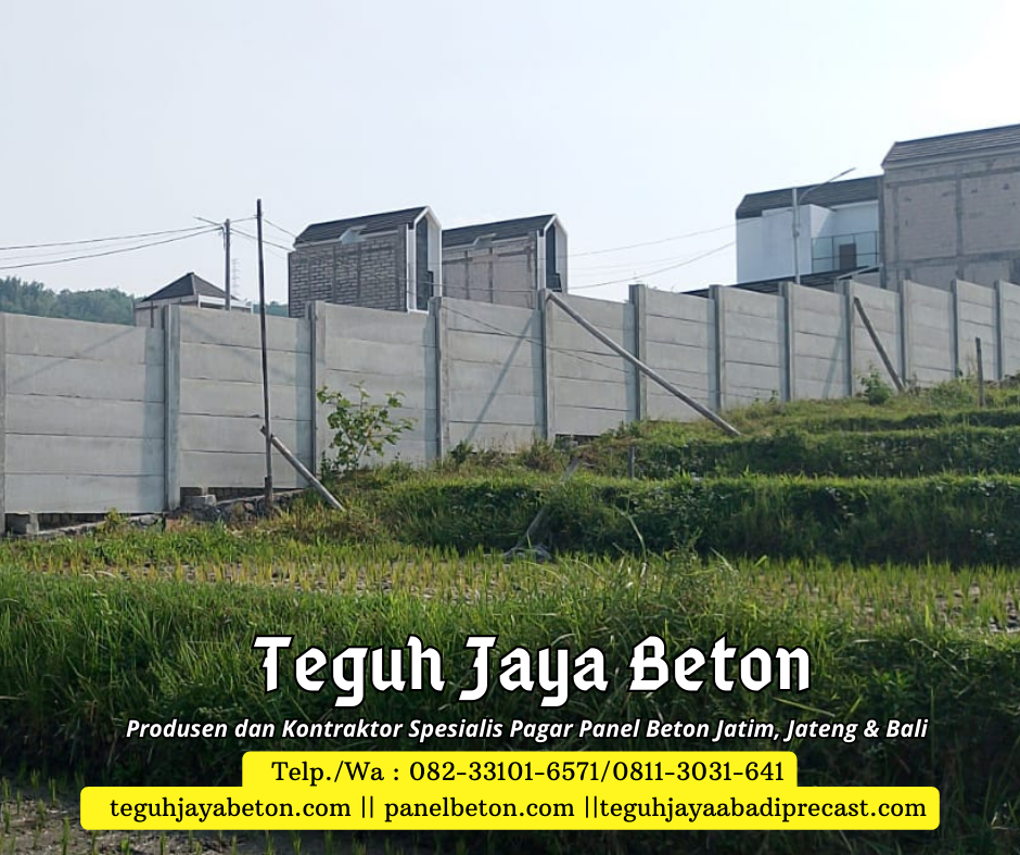 Sebagai produsen dan kontraktor pagar panel beton, Kami siap memenuhi kebutuhan pagar panel beton Anda. Dengan pengalaman yang terbilang cukup di bidangnya Teguh Jaya siap melayani Anda dengan sepenuh hati. Jaminan kualitas produk dan pelayanan yang prima menjadi motivasi andalan dari Teguh Jaya. Teguh Jaya melayani jasa penjualan dan pemasangan Pagar panel beton untuk area Jawa Timur, Jawa Tengah dan Bali. Jangan ragu lagi segera order produk di Kami….