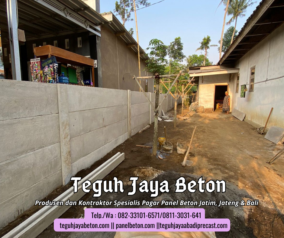 Sebagai produsen dan kontraktor pagar panel beton, Kami siap memenuhi kebutuhan pagar panel beton Anda. Dengan pengalaman yang terbilang cukup di bidangnya Teguh Jaya siap melayani Anda dengan sepenuh hati. Jaminan kualitas produk dan pelayanan yang prima menjadi motivasi andalan dari Teguh Jaya. Teguh Jaya melayani jasa penjualan dan pemasangan Pagar panel beton untuk area Jawa Timur, Jawa Tengah dan Bali. Jangan ragu lagi segera order produk di Kami….