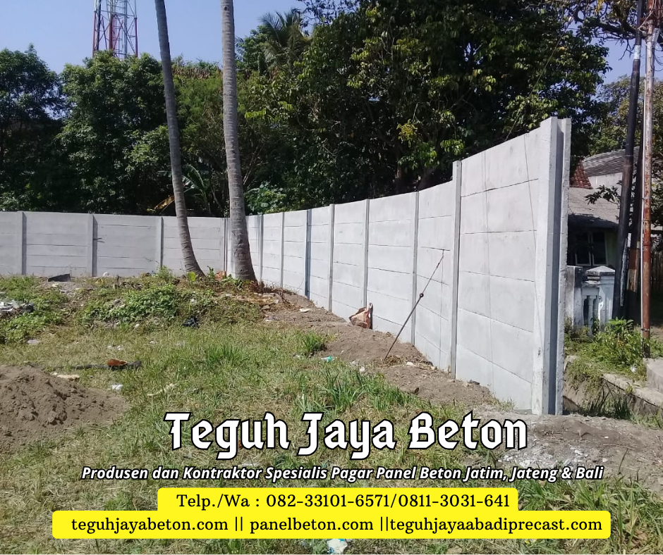 Sebagai produsen dan kontraktor pagar panel beton, Kami siap memenuhi kebutuhan pagar panel beton Anda. Dengan pengalaman yang terbilang cukup di bidangnya Teguh Jaya siap melayani Anda dengan sepenuh hati. Jaminan kualitas produk dan pelayanan yang prima menjadi motivasi andalan dari Teguh Jaya. Teguh Jaya melayani jasa penjualan dan pemasangan Pagar panel beton untuk area Jawa Timur, Jawa Tengah dan Bali. Jangan ragu lagi segera order produk di Kami….
